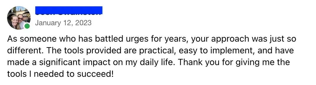Inside, you'll get video trainings that show you how to find what's driving your urges and powerful tools to stop them in the moment.